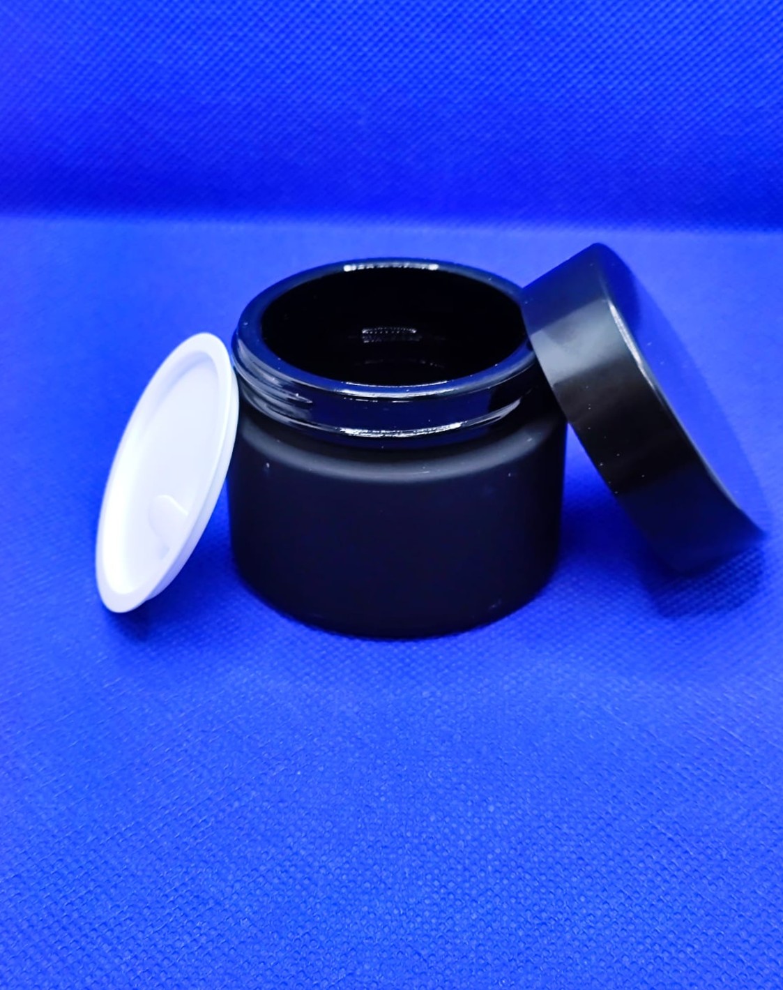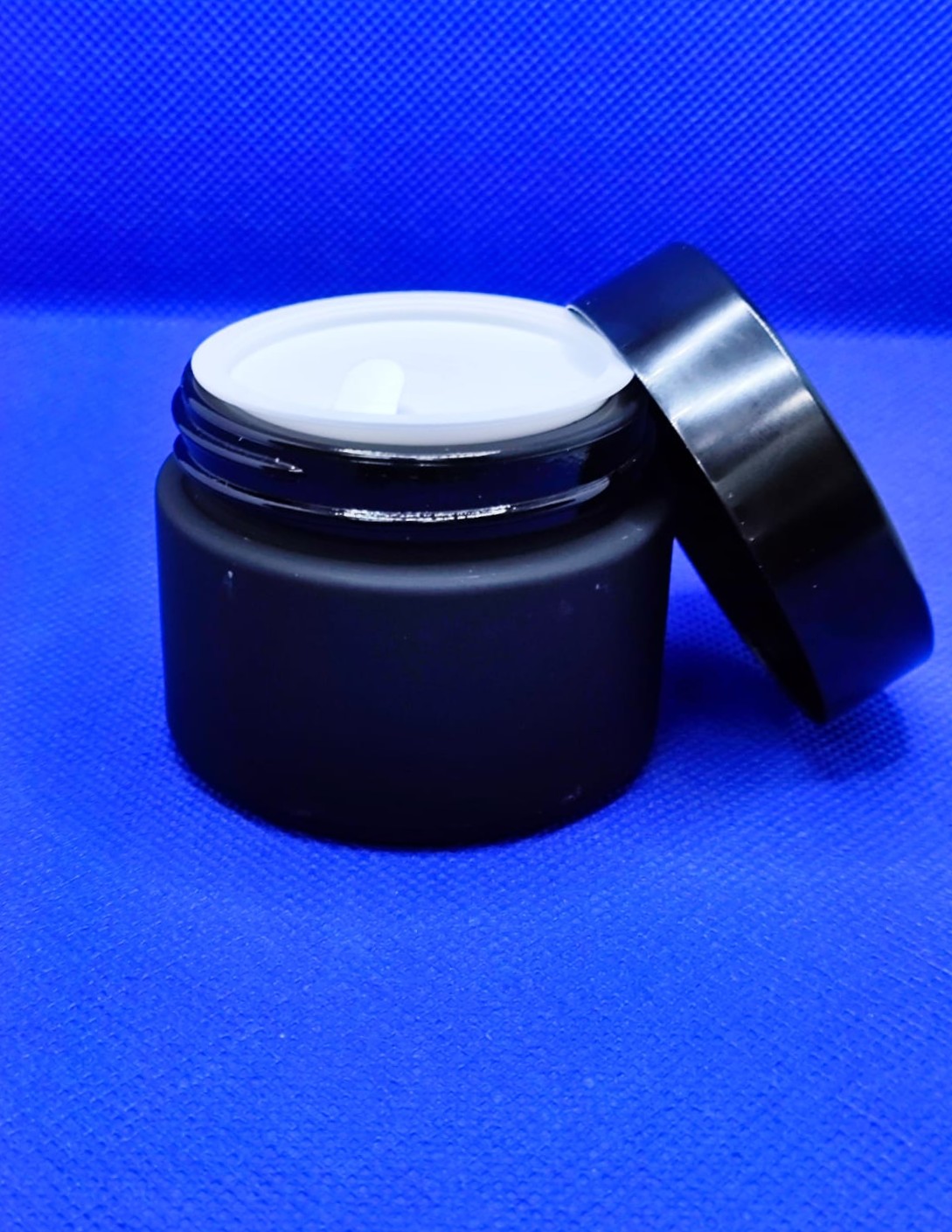 FABRICADA EN VIDRIO NEGRO ESMERILADA CON ARENA, TAPA ROSCA NEGRA, LINER INCLUIDO, USO FARMACEUTICO Y COSMETICO